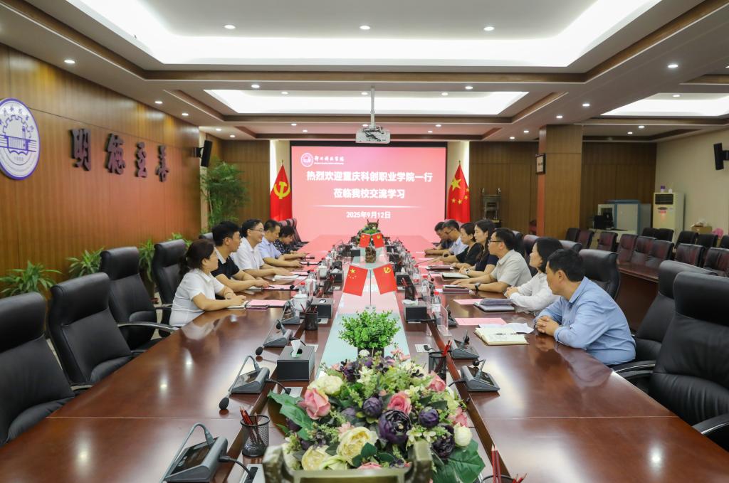 董刚书记一行对我校的热情接待和周到安排表示感谢。他介绍了重庆科创职业学院情况,并表示,此次交流的主要目的是学习我校在党建思政、产教融合、高质量就业等方面的经验和做法,并希望通过两校交流,学习借鉴好的经验做法,推动重庆科创职业学院的发展。