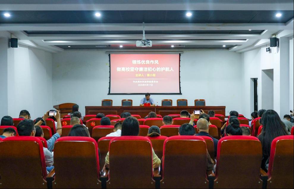 9月17日下午,我校2025年教工党支部书记及纪检委员专题培训班开班仪式在众创中心四楼多功能报告厅举行。学校党委副书记秦小刚,党委委员、副校长刘亮军,党委委员、副校长宋志豪,党委委员、宣传部部长岳朝杰,各教工党支部书记与二级党组织纪检委员等50余人参加了开班仪式。党委副书记刘欣作动员讲话,党委副书记张文婷主持开班仪式。