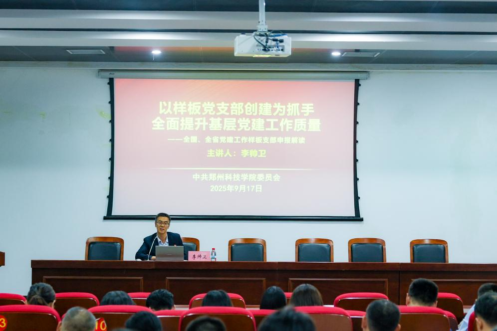 校党委办公室副主任李帅卫作题为《以样板党支部创建为抓手 全面提升基层党建工作质量》的专题讲座,讲解既有政策高度,又有实操温度,从样板支部申报由来,到申报材料撰写的技巧,到获批后工作的开展以及未来展望,为大家做了解读。