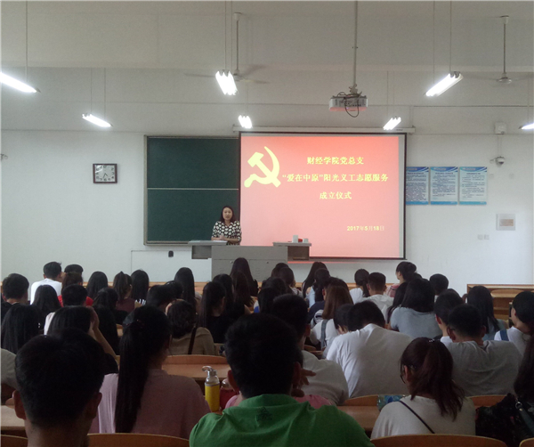 5月18日,财经学院党总支“爱在中原”阳光义工志愿服务成立大会于电南301成功召开,会议由学生党支部书记雷婷主持。