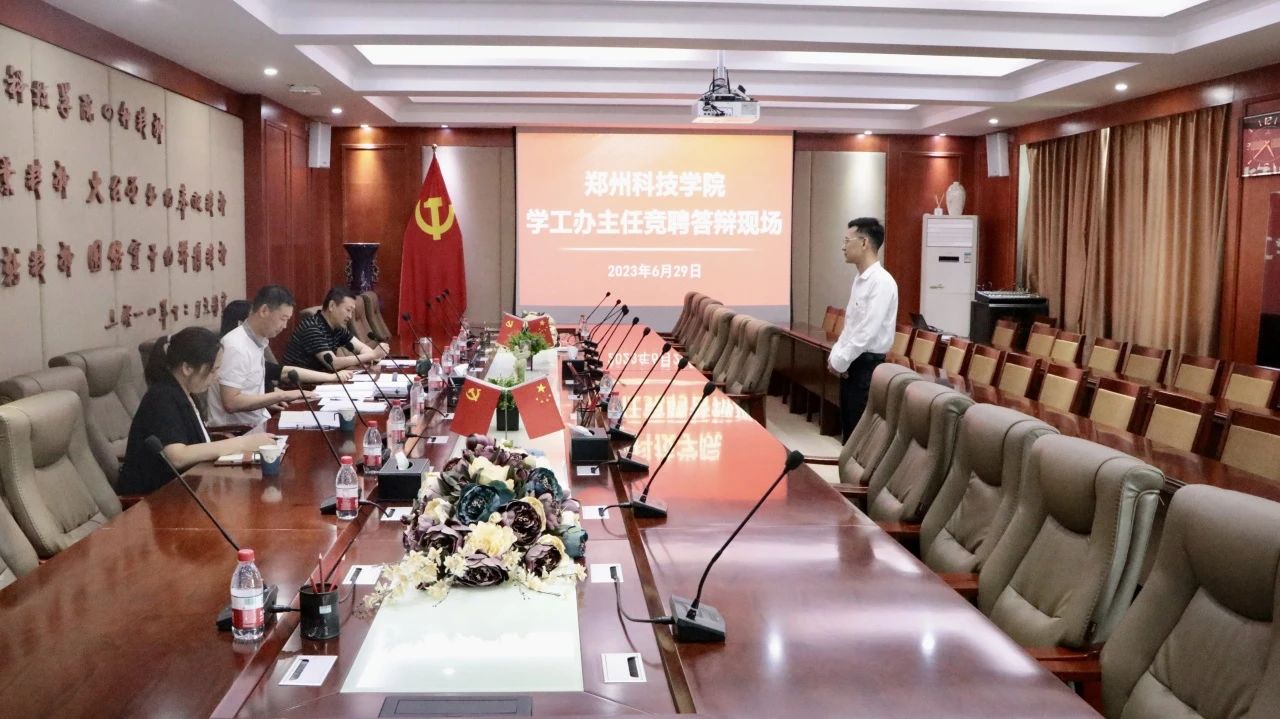 6月29日下午,我校在实验中心第三会议室举行二级学院教科办主任、学工办主任公开竞聘大会。评委由党委委员、人事处处长孙锦礼,党委委员、组织部部长张文婷,党委委员、学生工作部部长王世军以及教务处、科研处负责人担任。会议由张文婷主持。