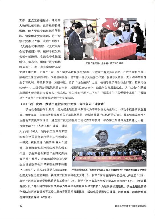 据悉,在全国民办高校党建工作典型案例选编中共刊登63篇,我校是河南省唯一入选的民办高校。
