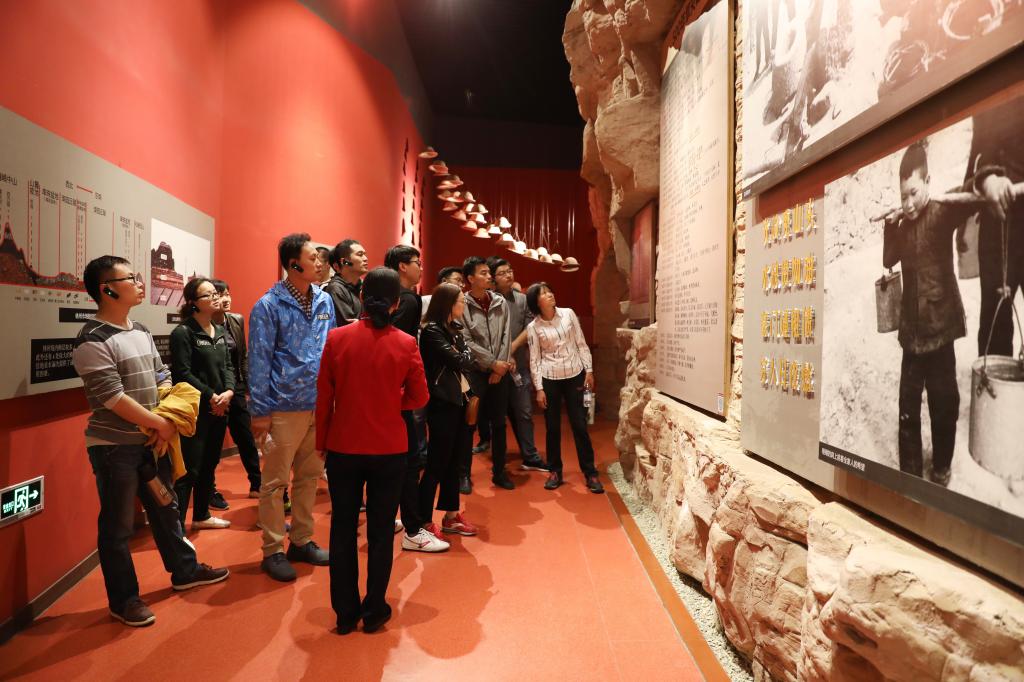在红旗渠纪念馆,党员们看着纪念馆里大量珍贵的图片、实物和纪录片,了解到红旗渠动工于1960年,勤劳勇敢的30万林州人民,苦战10个春秋,仅仅靠着一锤,一铲,两只手,在太行山悬崖峭壁上修成了全长1500公里的水渠。听着讲解员讲述当年众多优秀党员和劳动模范不畏艰险、顽强拼搏的感人事迹,被他们非凡壮举深深震撼了。