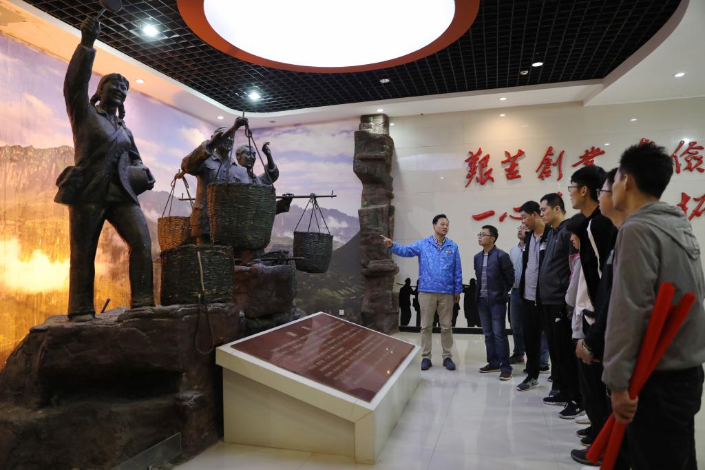 “20世纪40年代中期,共产党员尹兴德、郭有恒、李林洹等人,用扁担、铁肩、双脚,把一担担生活用品送上山,将一担担土特产品挑下山,架起了连接城乡、沟通党群关系的桥梁,并在实践中创造出扁担精神。”在扁担精神纪念馆,校办党支部书记宋志豪向党员们介绍了扁担精神的由来。