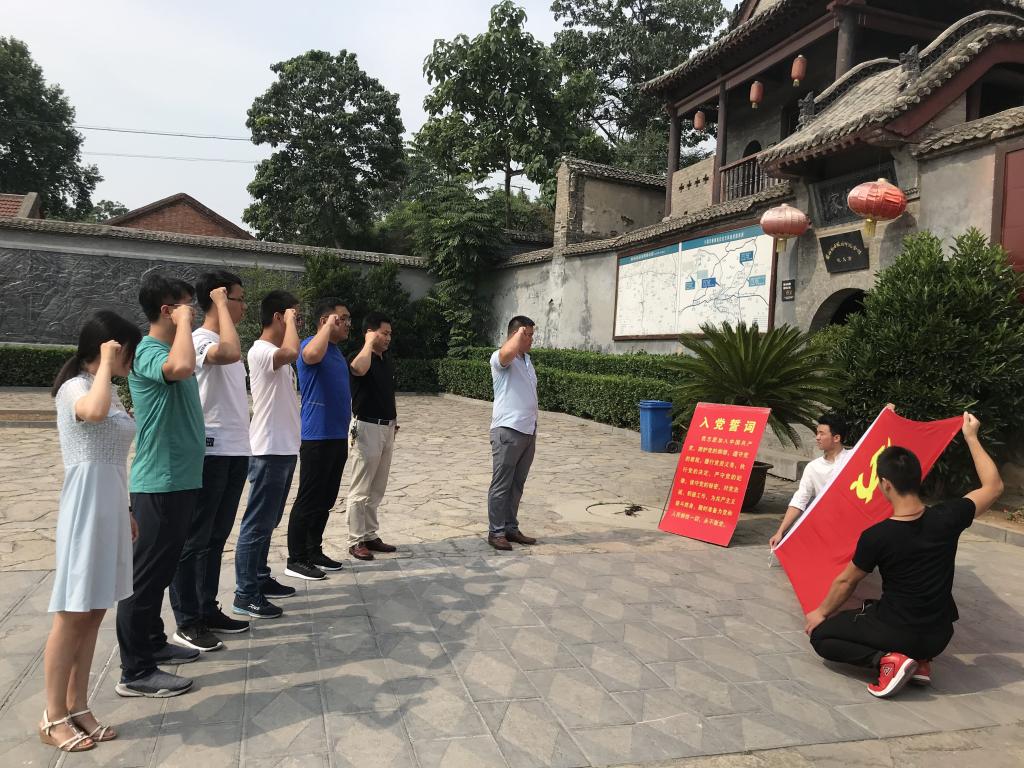 在纪念馆门前院内广场神圣的党旗面前,组织委员李海滨带领同志们重温了入党誓词,并举行了主题签名活动。