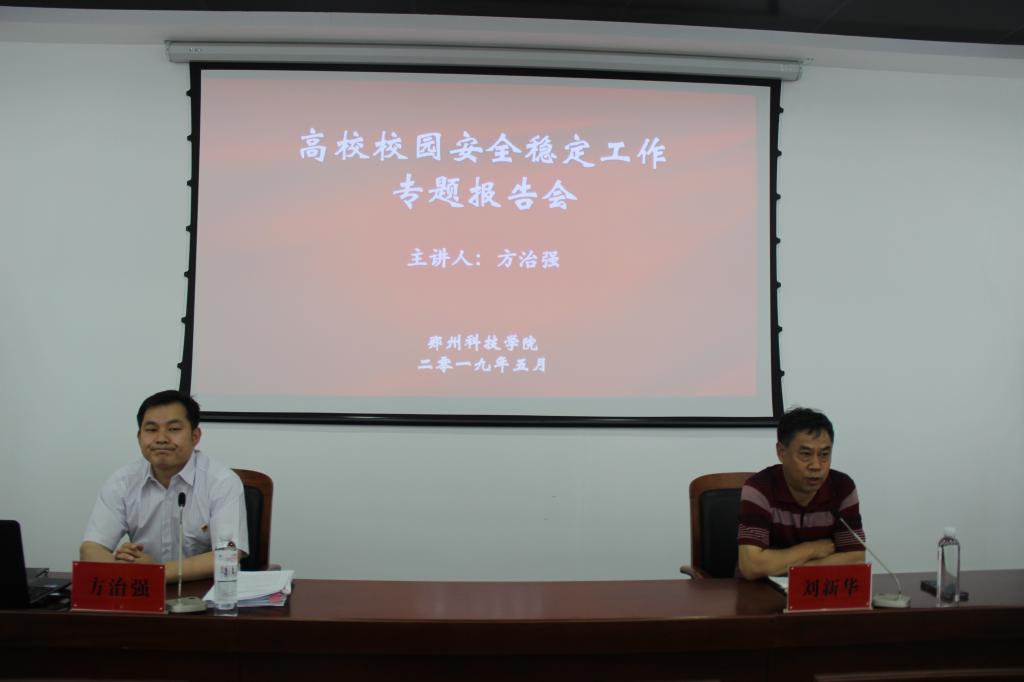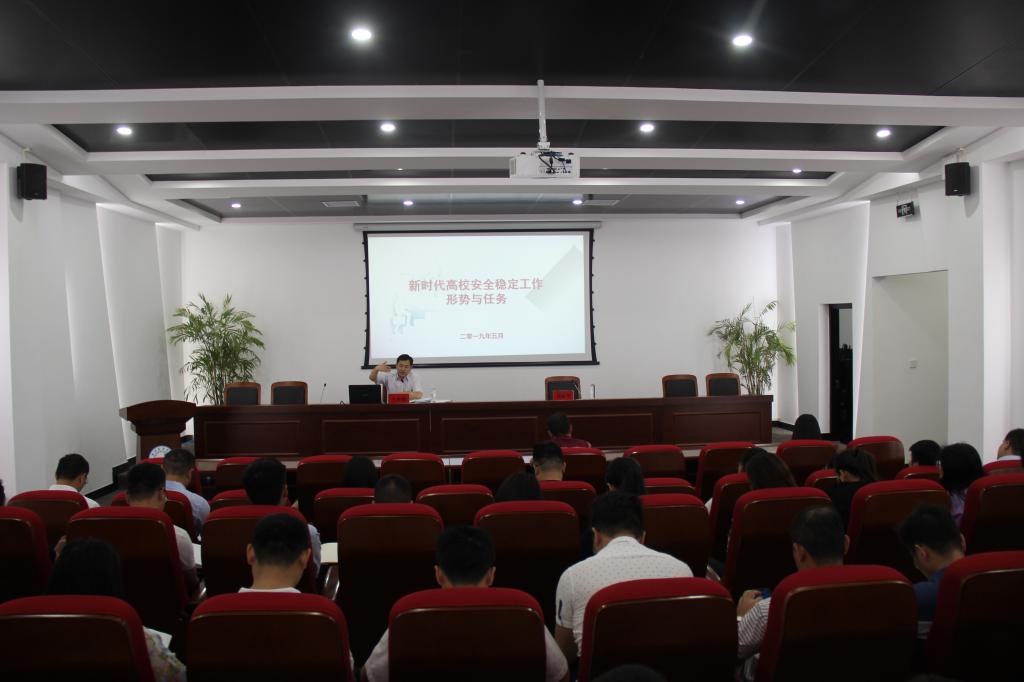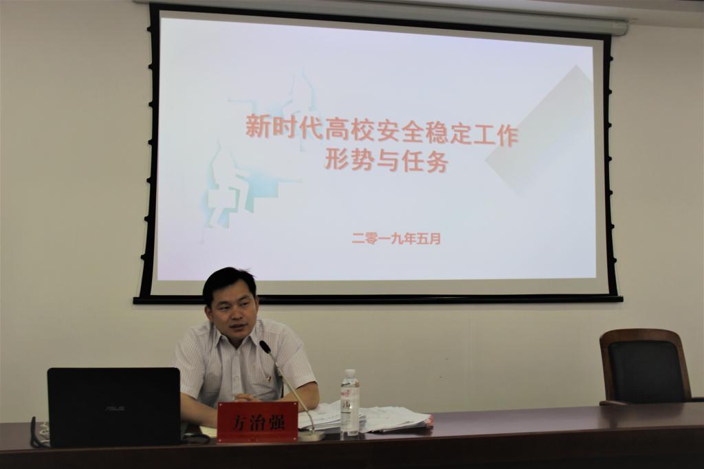 为加强党员干部意识形态教育,5月21日下午,按照学校中层党务干部培训班计划安排,学校党委邀请教育厅思政处副处长方治强做关于高校校园安全稳定工作专题报告。报告会由党委书记刘新华主持,全校100余名中层党员干部参加会议。