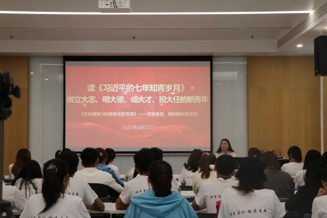 6月23日下午,党委委员、组织部长张文婷在一站式服务大厅多媒体教室,为学生党员讲题为《读〈习近平的七年知青岁月〉,做立大志、明大德、成大才、担大任的新青年》的专题党课。