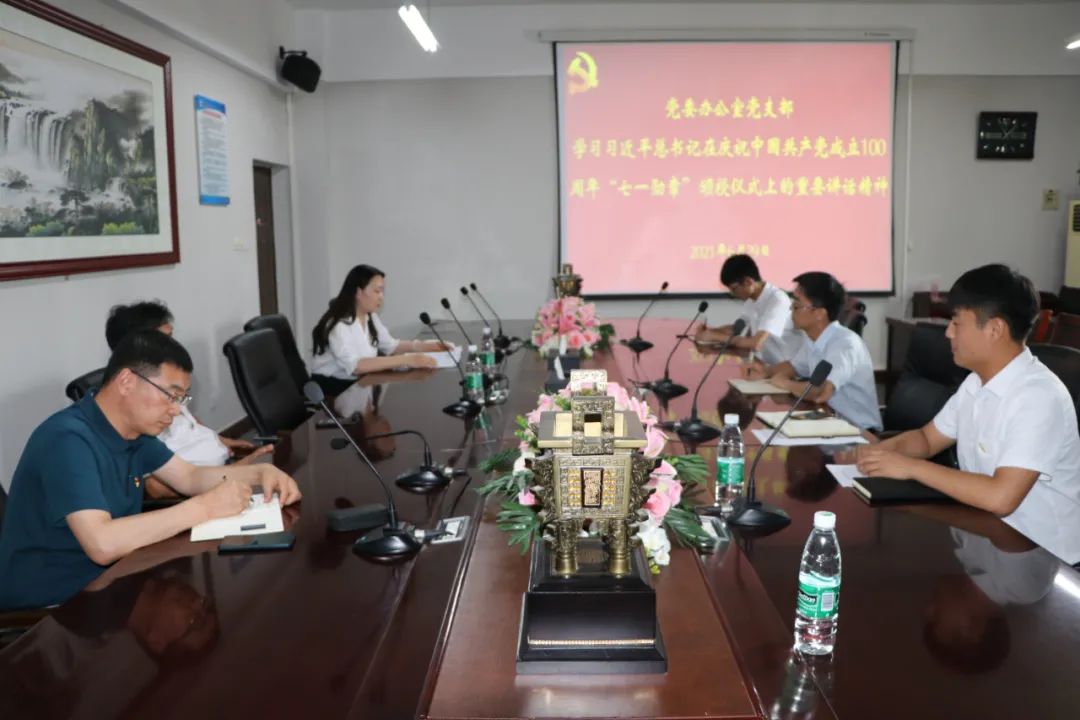 6月29日上午,党委办公室党支部组织全体党员学习习近平总书记在庆祝中国共产党成立100周年“七一勋章”颁授仪式上的重要讲话精神。党委委员刘新华、刘亮军以普通党员的身份参加学习,党支部书记张文婷主持会议。