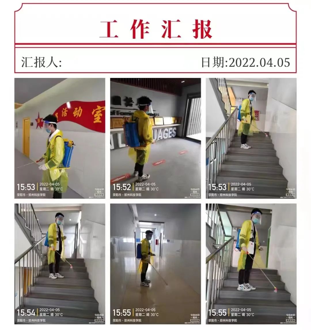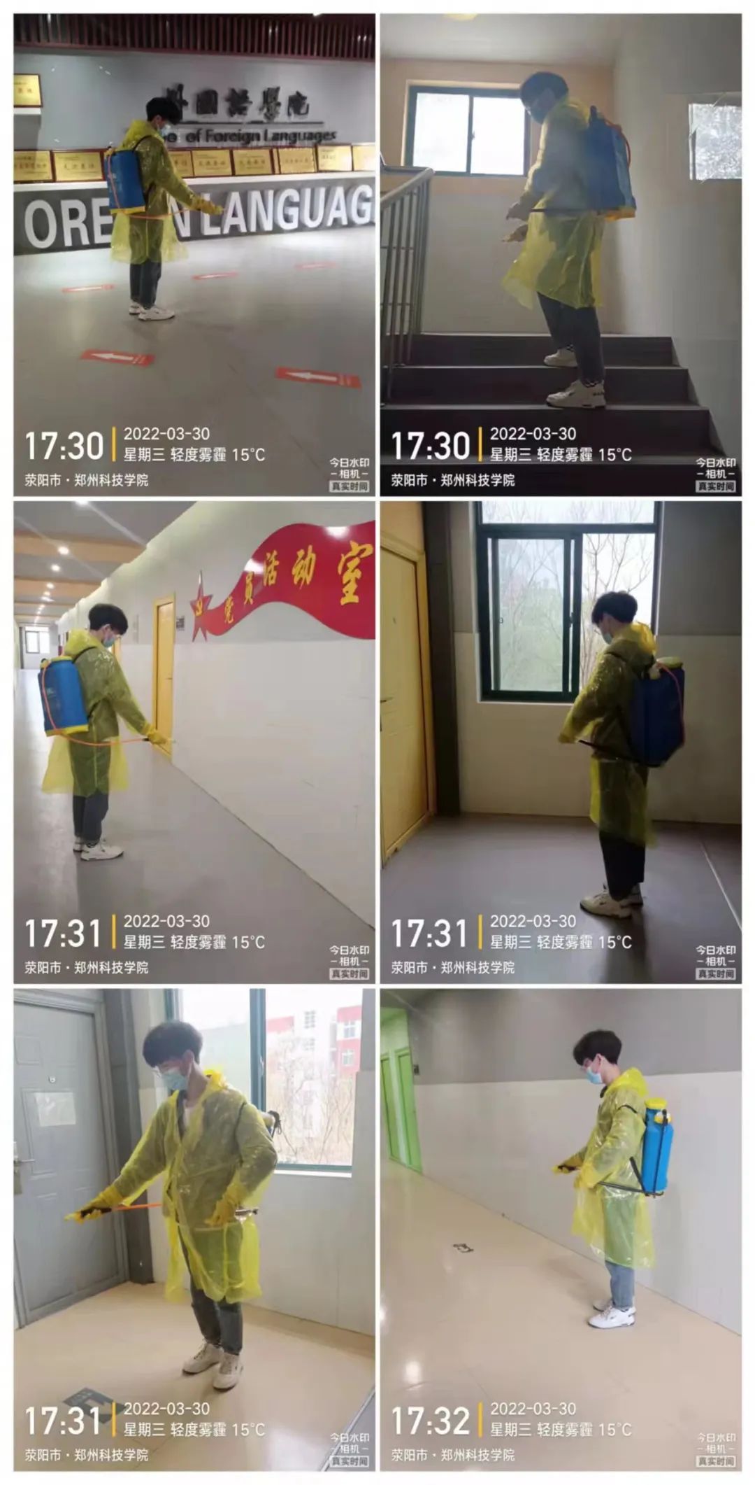 在院系领导和老师的指导下,外国语学院生活服务部每日安排学生干部定点对教学楼进行全面消杀,各班班委组织本班同学对学习场所寝室卫生死角进行消毒消杀,切实作好校园疫情防控工作,保障师生的身体健康和安全。