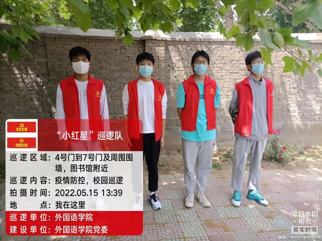 外国语学院“小红星”志愿巡逻队小队成员冲锋在前,以高度的责任感和使命感筑牢疫情“防护墙”。让党旗在战“疫”一线飘扬,用实际行动履行“请党放心,强国有我”的青春誓言。我院党委充分发挥党组织在疫情防控工作中的战斗堡垒作用,党员志愿者们冲锋在前,无私奉献,用行动筑起安全线,定将早日打赢疫情防控这场硬仗!
