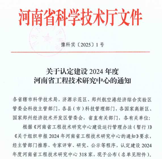 近日,河南省科学技术厅发布《关于认定建设2024年度河南省工程技术研究中心的通知》(豫科实[2025]1号),我校牵头建设的“河南省工业多模态信息监测与分析处理工程技术研究中心”获批立项建设。
