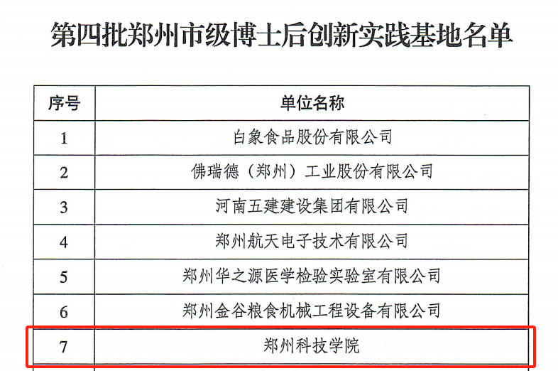 12月24日,郑州市人力资源和社会保障局发布了《关于批准白象食品股份有限公司等16家单位设立市级博士后创新实践基地的通知》(郑人社办函[2024]48号),我校喜获设立第四批郑州市级博士后创新实践基地,开展博士后工作。