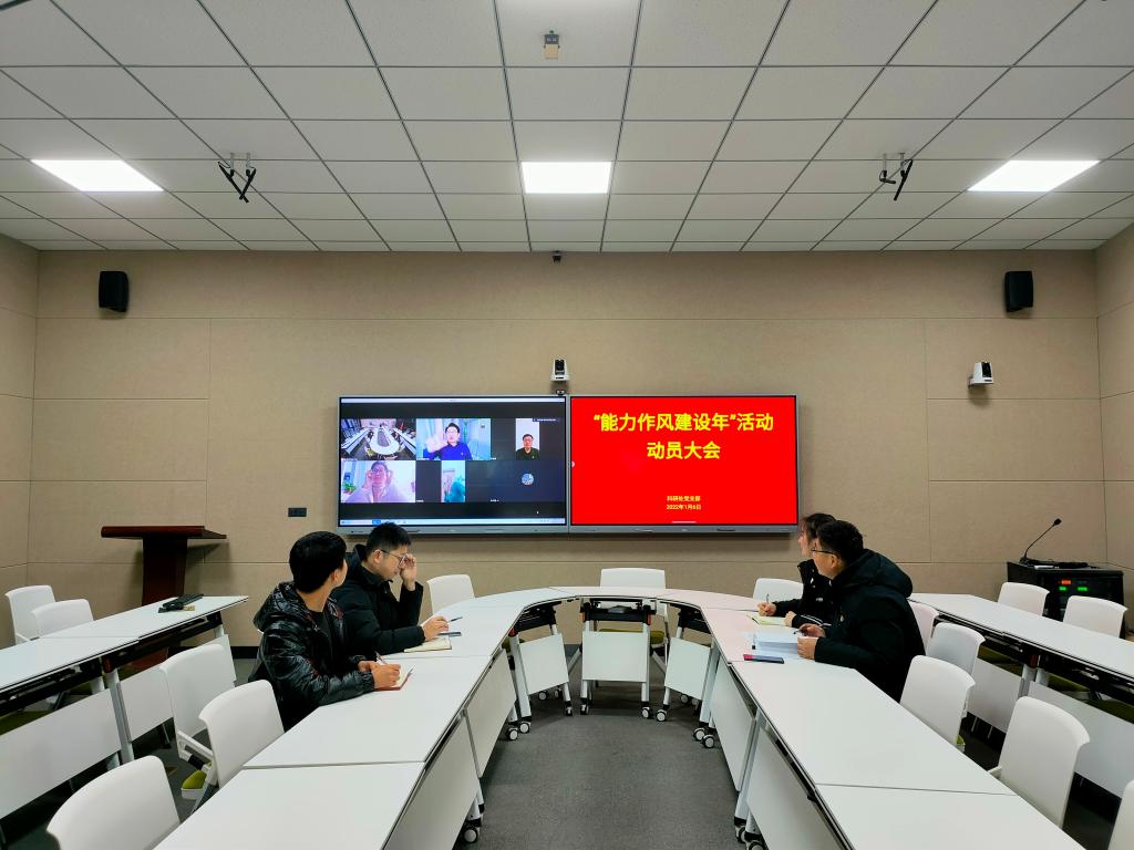 为深入贯彻落实学校“能力作风建设年”活动实施方案》动员部署会议精神,1月6午,科研处党支部召开“能力作风建设年”活动动员大会,深入学习贯彻党的十九届六中全会精神和习近平总书记关于能力作风建设的重要论述,对开展“能力作风建设年”活动进行动员部署。党支部书记申晓东主持会议,支部全体党员通过线上线下相结合的形式参加了会议