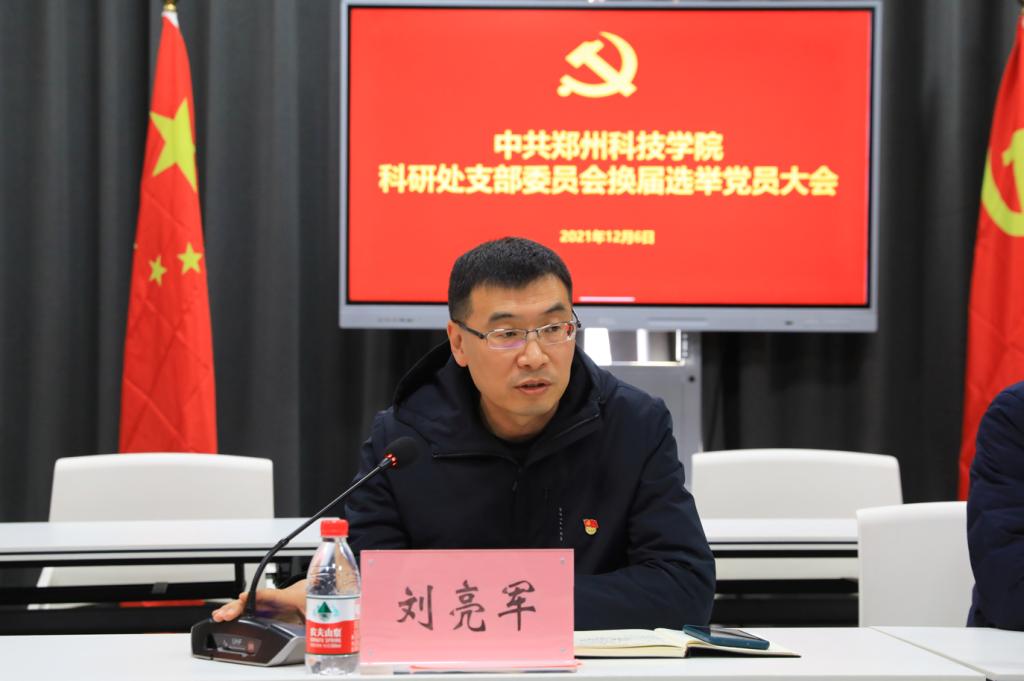 校党委委员刘亮军对上一届支委会的工作表示了肯定,对新一届支委会表示了祝贺和期许,他希望新一届支委会能够带领科研处全体党员继续发挥战斗堡垒作用,继续保持群策群力、团结一心的工作氛围,促进科研处工作再上新层次、迈上新水平、站上新高度。同时,对标“党建工作样板支部”标准,抓好党建工作,争取早日成为样板支部的一员。