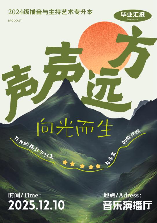 整场演出精彩纷呈,高潮迭起,充分展现了2024级播音与主持艺术专升本同学们过硬的专业技能、丰富的艺术创造力以及良好的团队协作精神。他们用声音和表演诠释了“声声远方,向光而生”的主题——在专业道路上不断追寻,用声音抵达远方,始终怀抱理想,向着光芒生长。