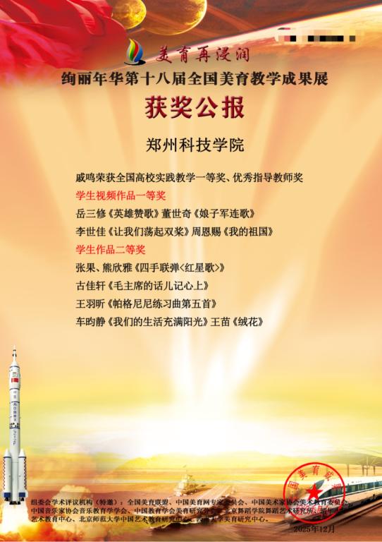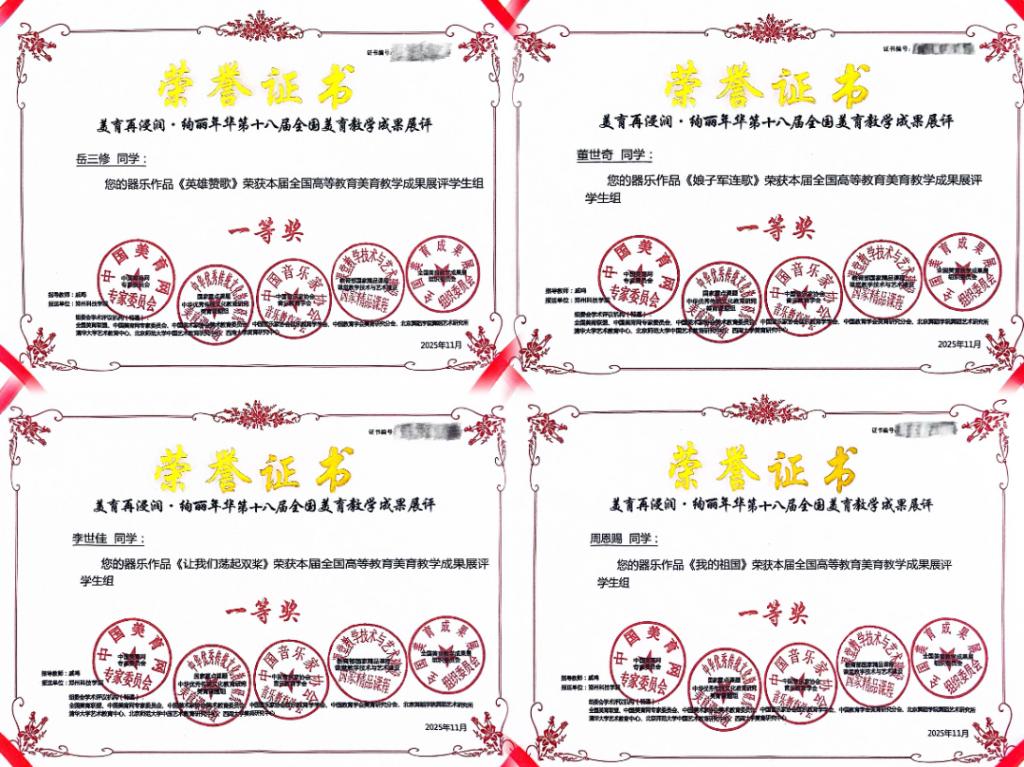 此次佳绩是音乐舞蹈学院美育教学成果的又一突破。未来,器乐教研室将继续以“艺术+思政”课程为抓手,完善“课堂教学-实践演出-竞赛检验”的育人闭环,让学生在艺术成长中涵养家国情怀、提升审美品格,培育更多兼具艺术表现力与社会责任感的新时代美育实践者。